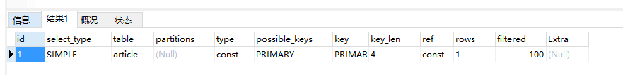 EXPLAIN SELECT  * FROM article WHERE id= 3
