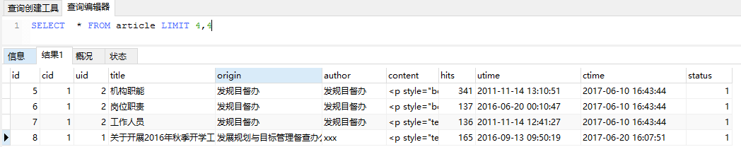 SELECT * FROM article  limit 2,4 # 第三条开始查询前4条数据
